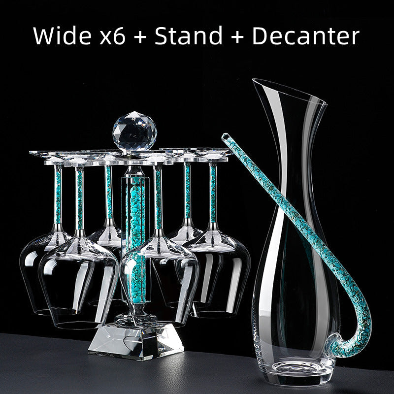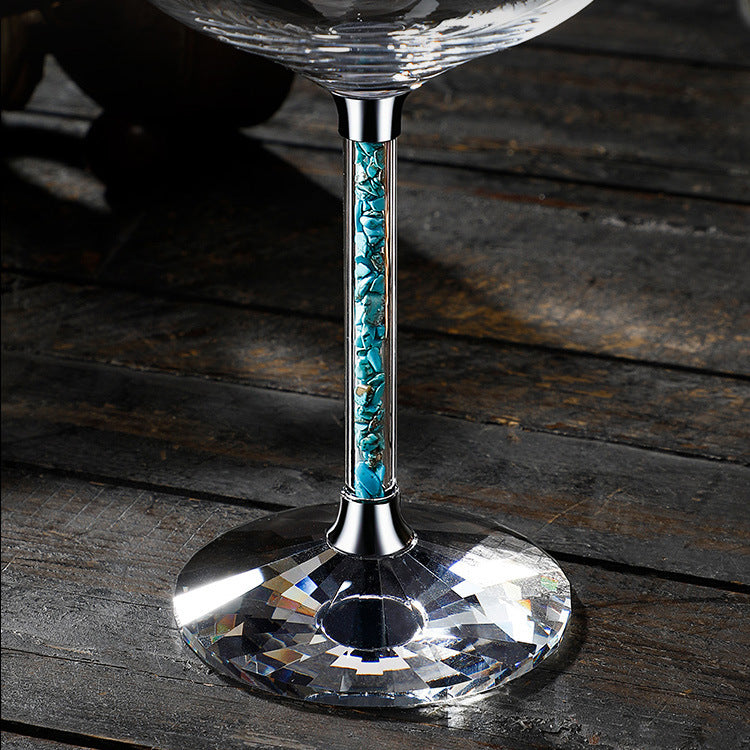 Elevate your wine-drinking experience with our Coral Turquoise Stem Red Wine Glasses and Decanter Set. This beautiful set includes four wine glasses and a decanter, all featuring a stunning coral turquoise stem that adds a touch of elegance and sophistication to any table setting. The unique mineral-like stem design catches the light beautifully, creating a mesmerizing effect that is sure to impress your guests.