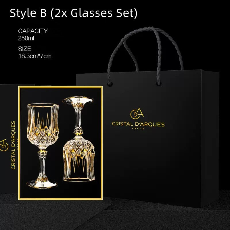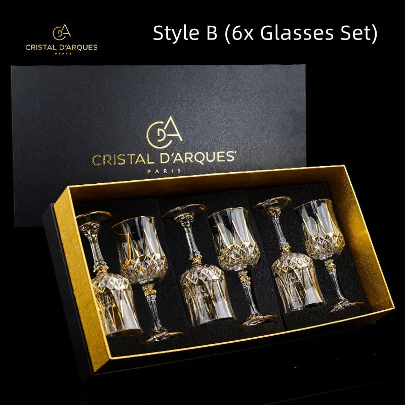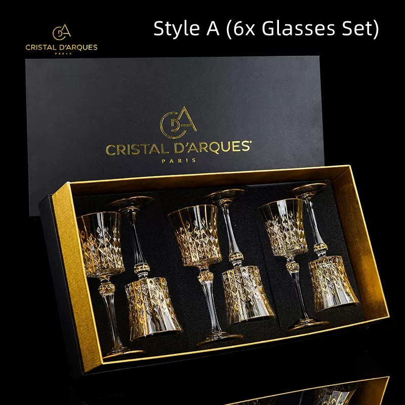 Introducing the exquisite Cristal D'Arques Golden Vine Crystal Wine Glasses with Decanter Set, a luxurious addition to any wine enthusiast's collection. Crafted from the finest quality crystal, these glasses boast an intricate design of golden vines that wraps around the stem, creating a stunning visual appeal. With a capacity of 12 ounces, these glasses are perfect for savouring your favorite vintage red or white wine. The decanter of 750 ml features a similar golden vine pattern that complements the glasses, making it a perfect match.