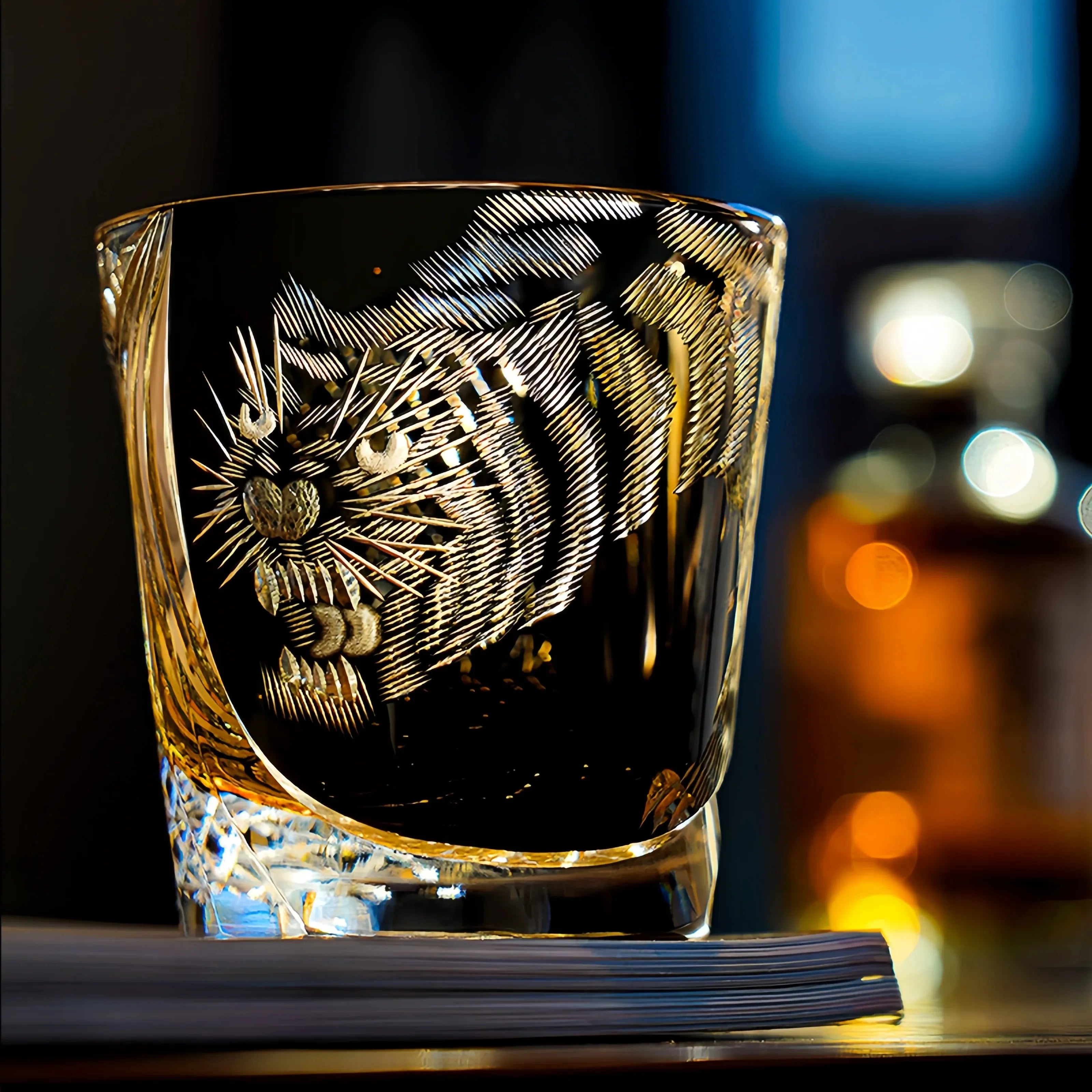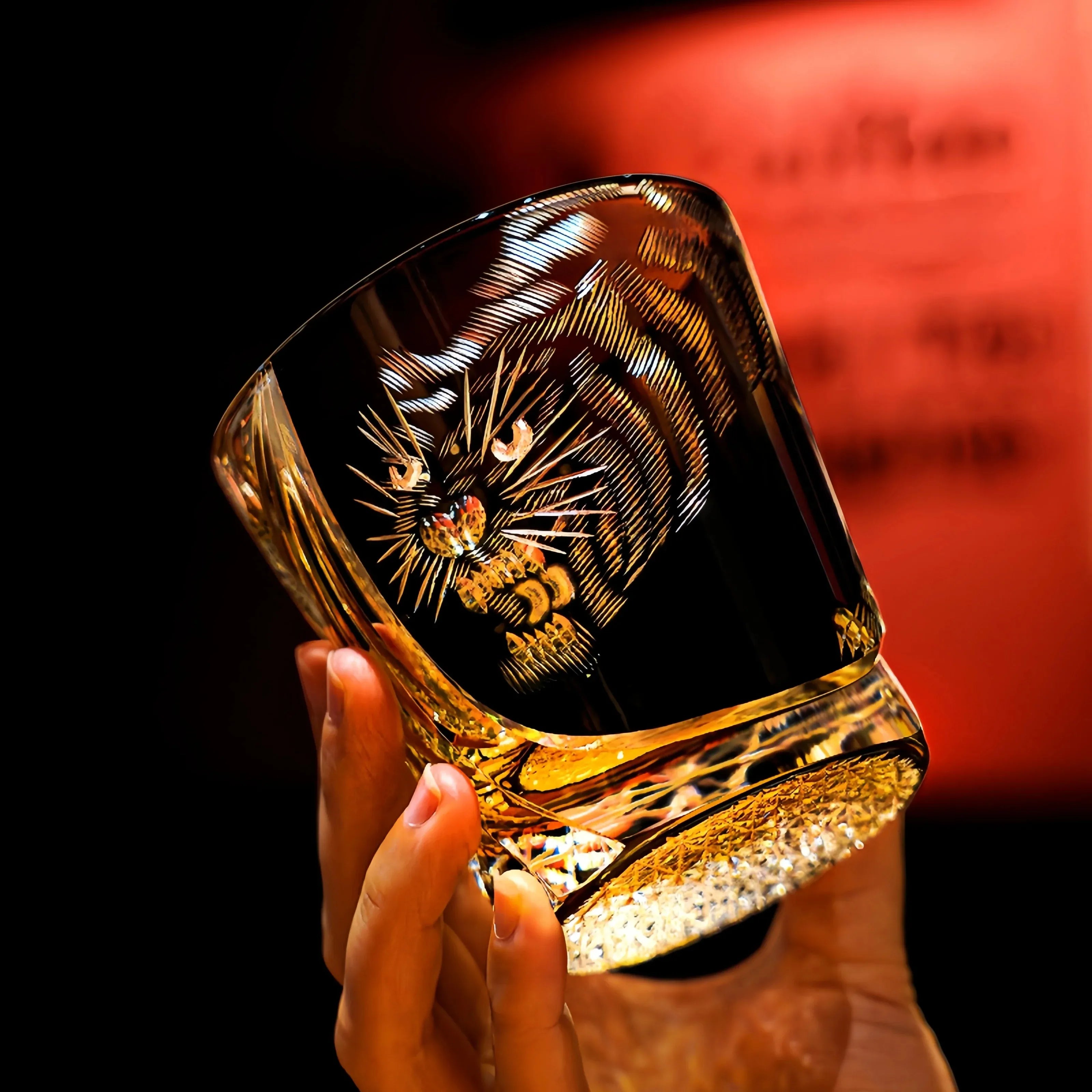 Powerful and mysterious, the Black Tiger whiskey glass radiates brilliance as its crystal-clear surface intertwines with the depth of midnight black, embodying the strength and enigma of the tiger. Emerging from the shadows, a fierce tiger is brought to life through exquisite Edo Kiriko hand-cut craftsmanship—precise, vivid, and captivating—capturing the very essence of traditional artistry.