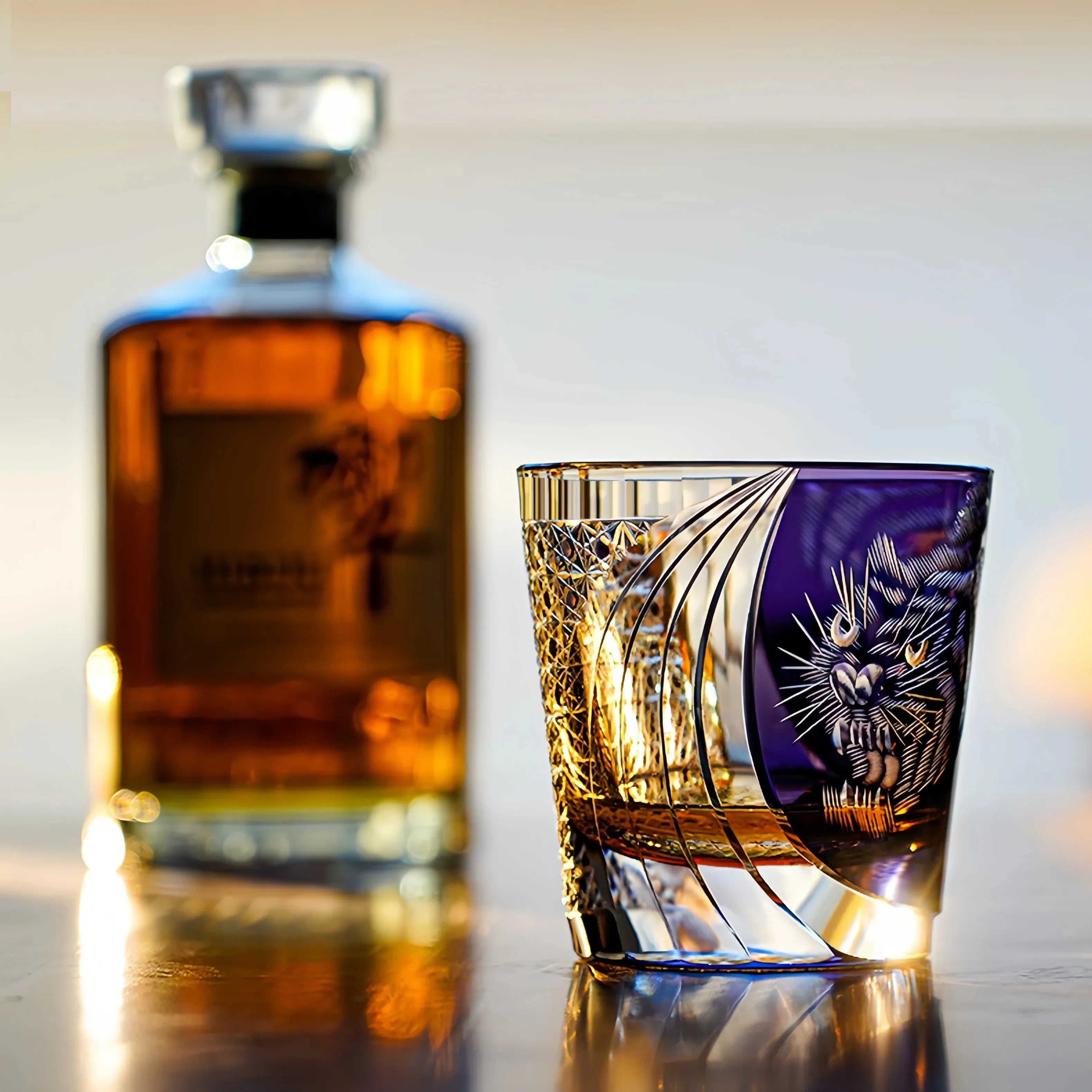 Bathed in a flowing purple radiance, this glass captures the majestic presence of the tiger. A roaring beast emerges from twilight, intricately hand-carved with lifelike precision and vitality, embodying the very essence of Edo Kiriko’s traditional craftsmanship.