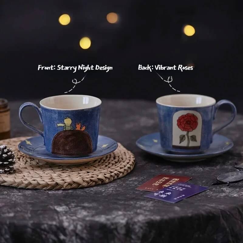 Bring a touch of whimsical elegance to your morning brew with our Hand-Painted Little Prince Ceramic Coffee Set. Inspired by the timeless tale of the Little Prince, this set captures the spirit of wonder, friendship and quiet joy in every handcrafted piece.
