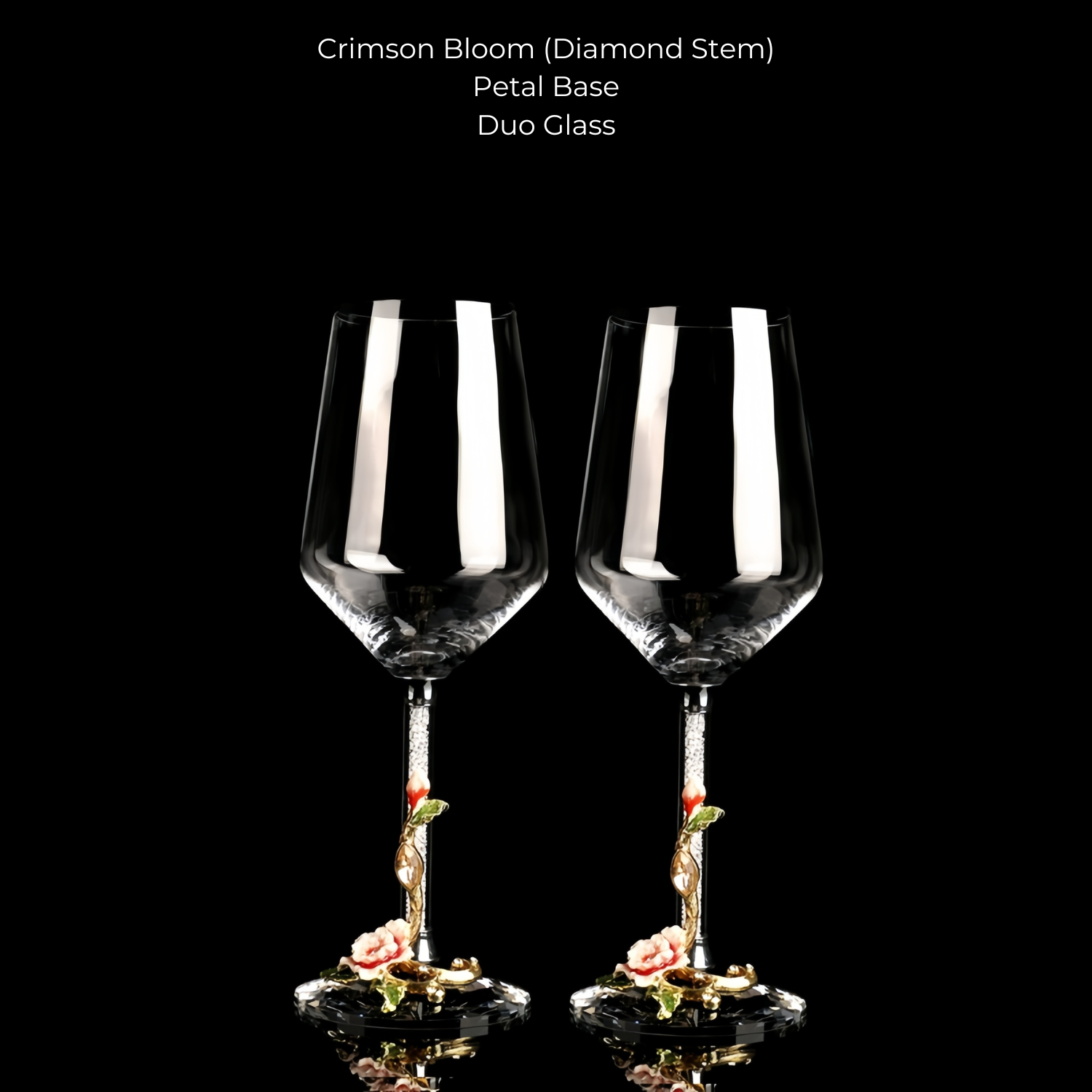 Available in two floral tones, these designs bring a soft, romantic charm to the table. The wine glasses come in two distinct stem styles: a standard stem for a classic look, and a diamond stem embedded with shimmering crystal-like accents for an added touch of brilliance.