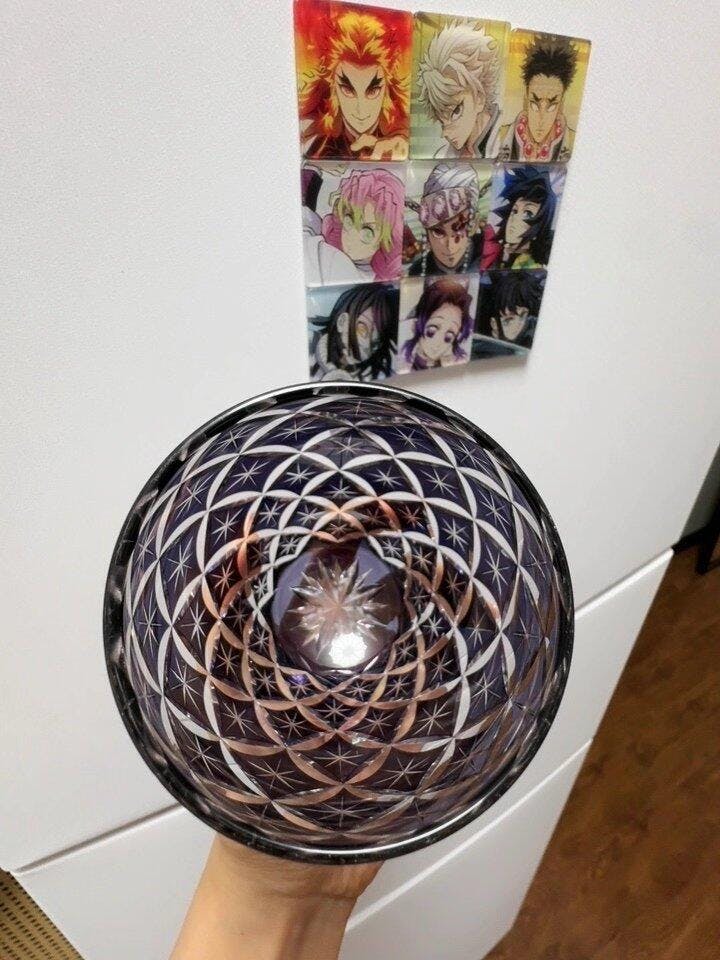 Artisans begin with simple outlines drawn on the glass surface, mapping the overall balance, symmetry, and light play of the final piece. Traditional Japanese motifs—hemp leaf, shippo, chrysanthemums, and more—are arranged to guide where lines will be cut and facets revealed. In Edo Kiriko, pattern beauty is achieved by precision, restraint, and the harmony of light and shadow.