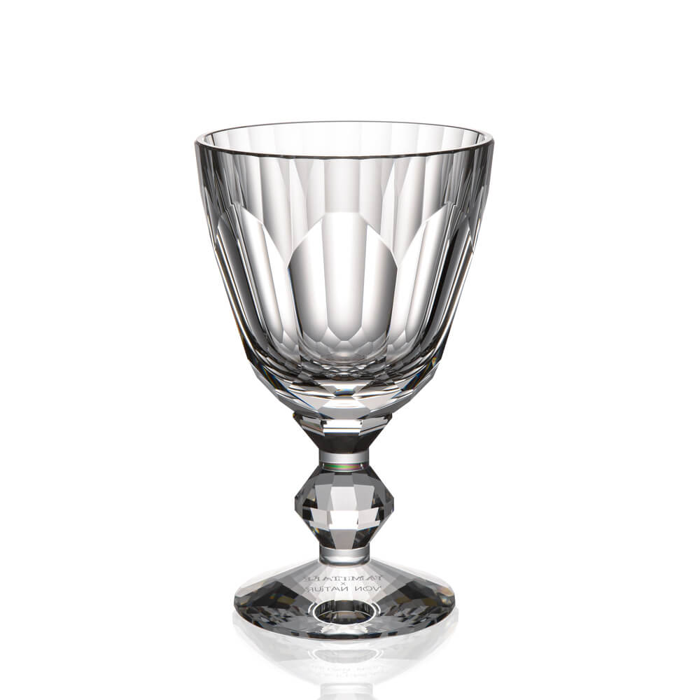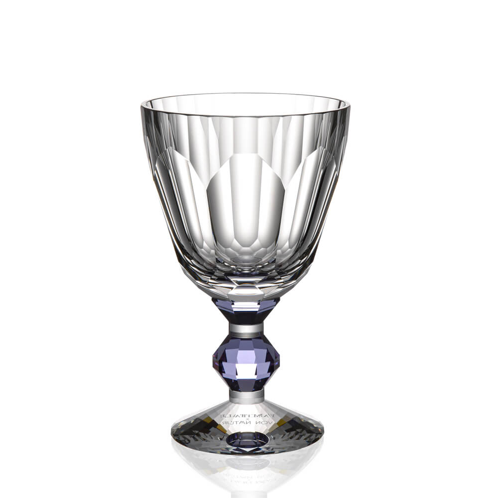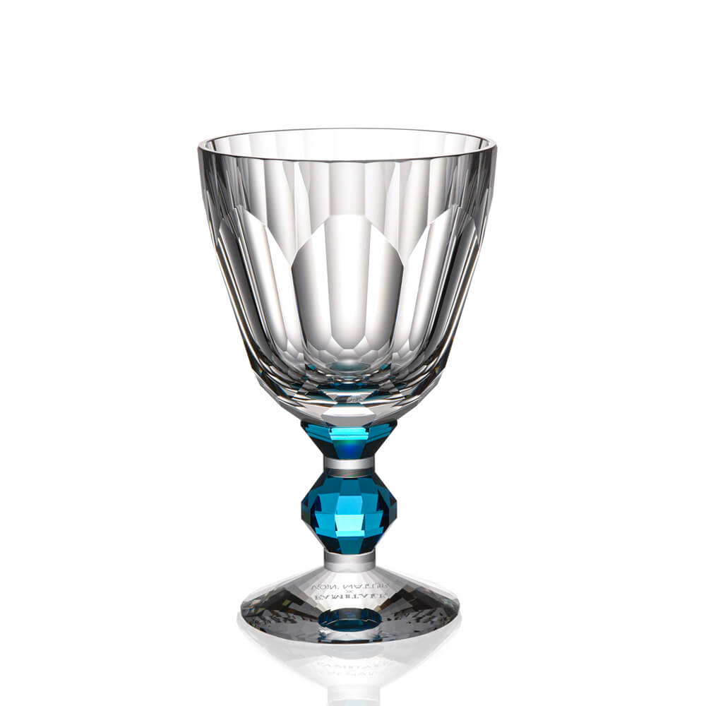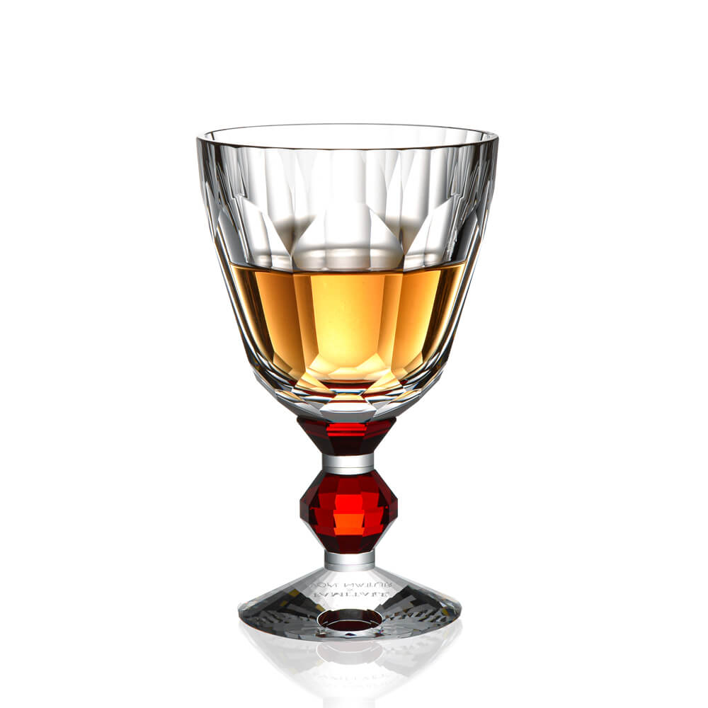 A masterpiece of French craftsmanship — this Baccarat hand cut crystal wine glass features a signature faceted bowl and a captivating jewel-toned crystal stem. Each crystal goblet is individually crafted by master artisans in Lorraine, France, making it an extraordinary addition to your luxury barware glasses collection or an unforgettable gift for any special occasion.