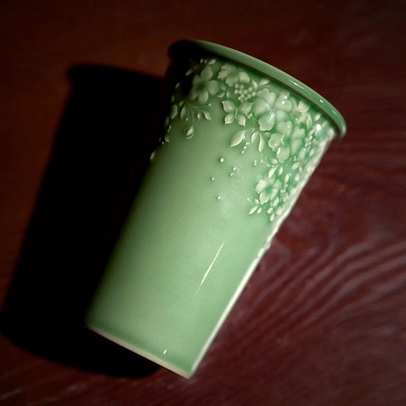Discover the elegance of traditional craftsmanship with this handmade blossom relief glass cup. Each piece is shaped, carved, and finished by skilled artisans, ensuring that no two cups are ever exactly the same. Its refreshing green glaze and delicate floral design bring a touch of nature and artistry to your daily routine. Perfect for water, cola, tea, or any refreshing drink, this cup elevates the ordinary into something truly special.