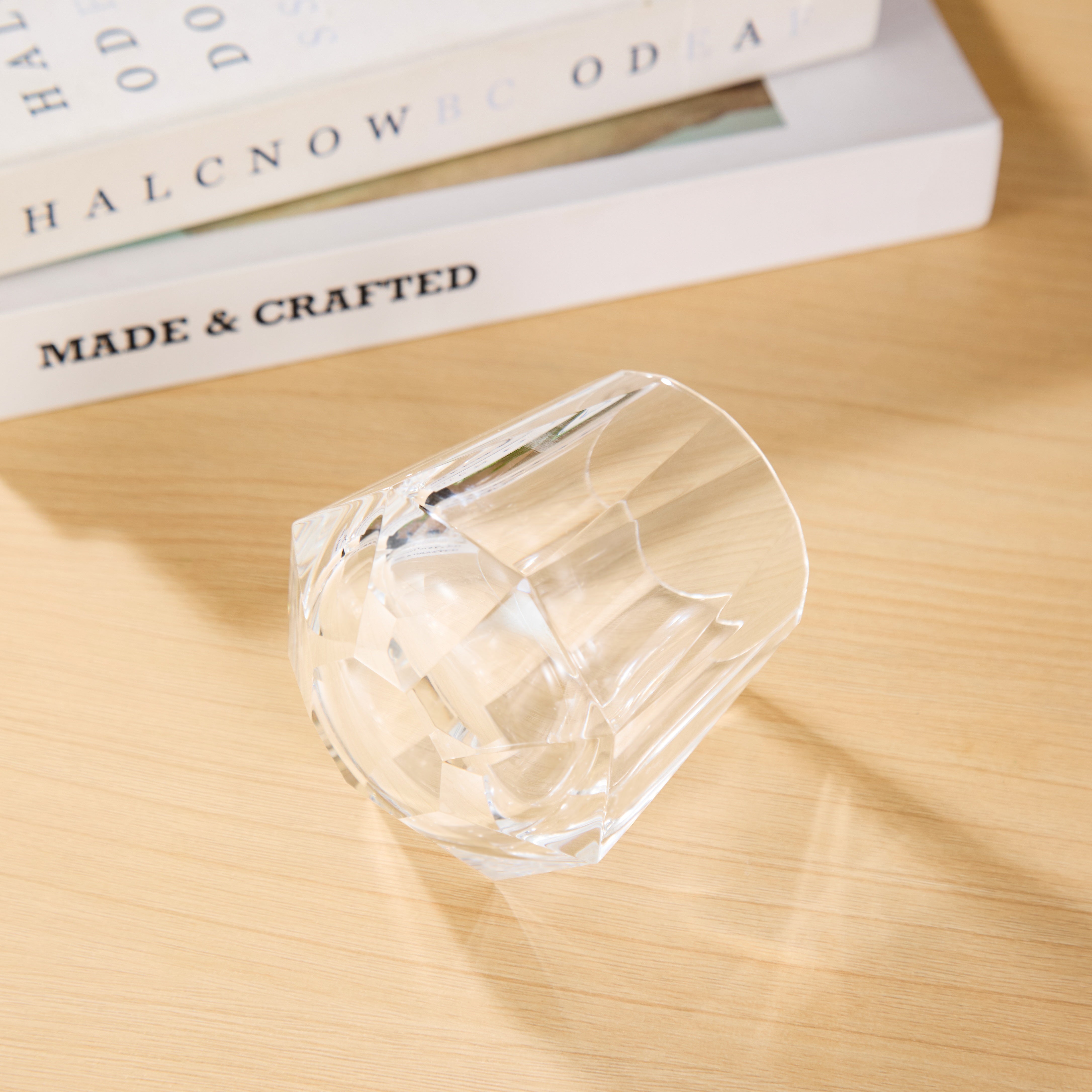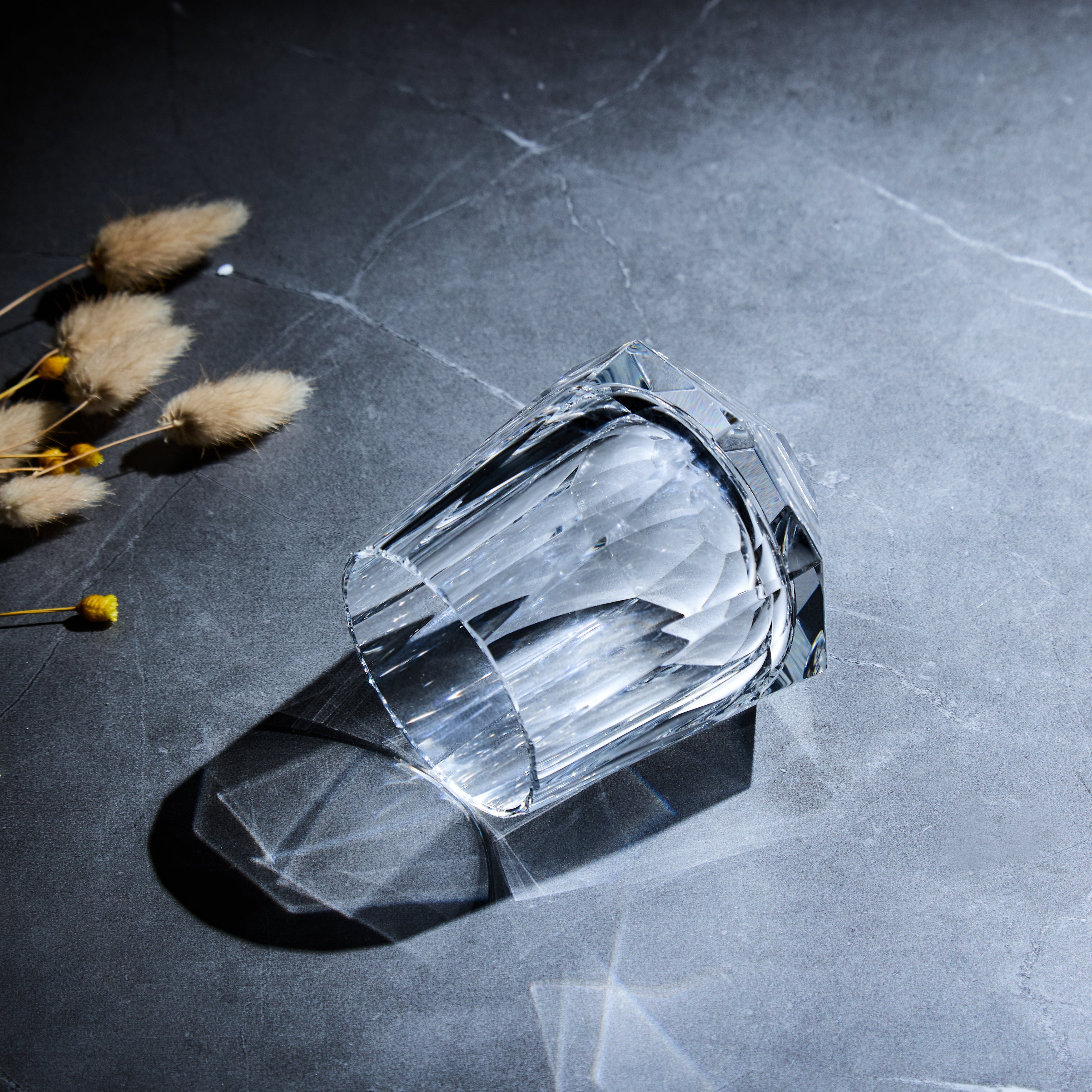 The Edo Kiriko Handcrafted Hikari-Tsuzumi Whisky Glass embodies the quiet dialogue between precision and light. Inspired by the form of a tsuzumi drum, its faceted base rises in rhythmic cuts that catch and scatter light in soft, layered tones.