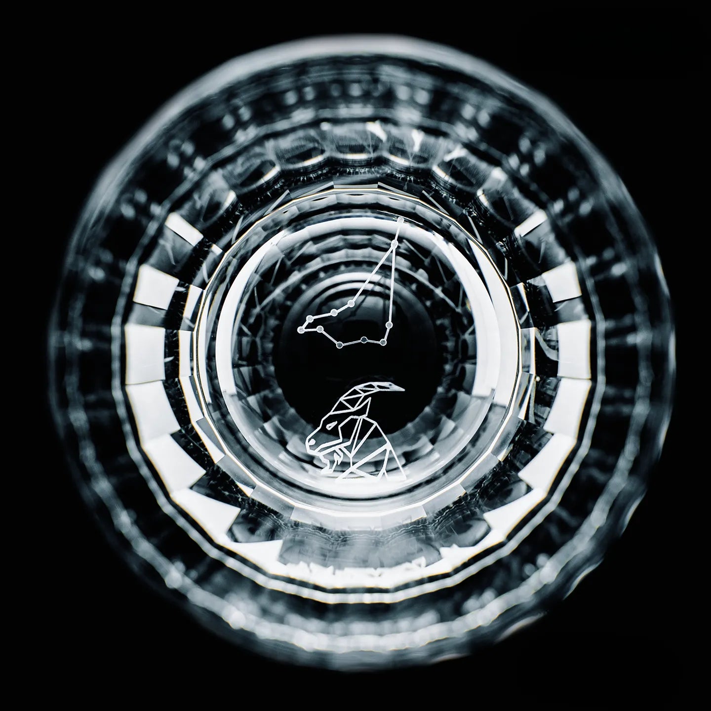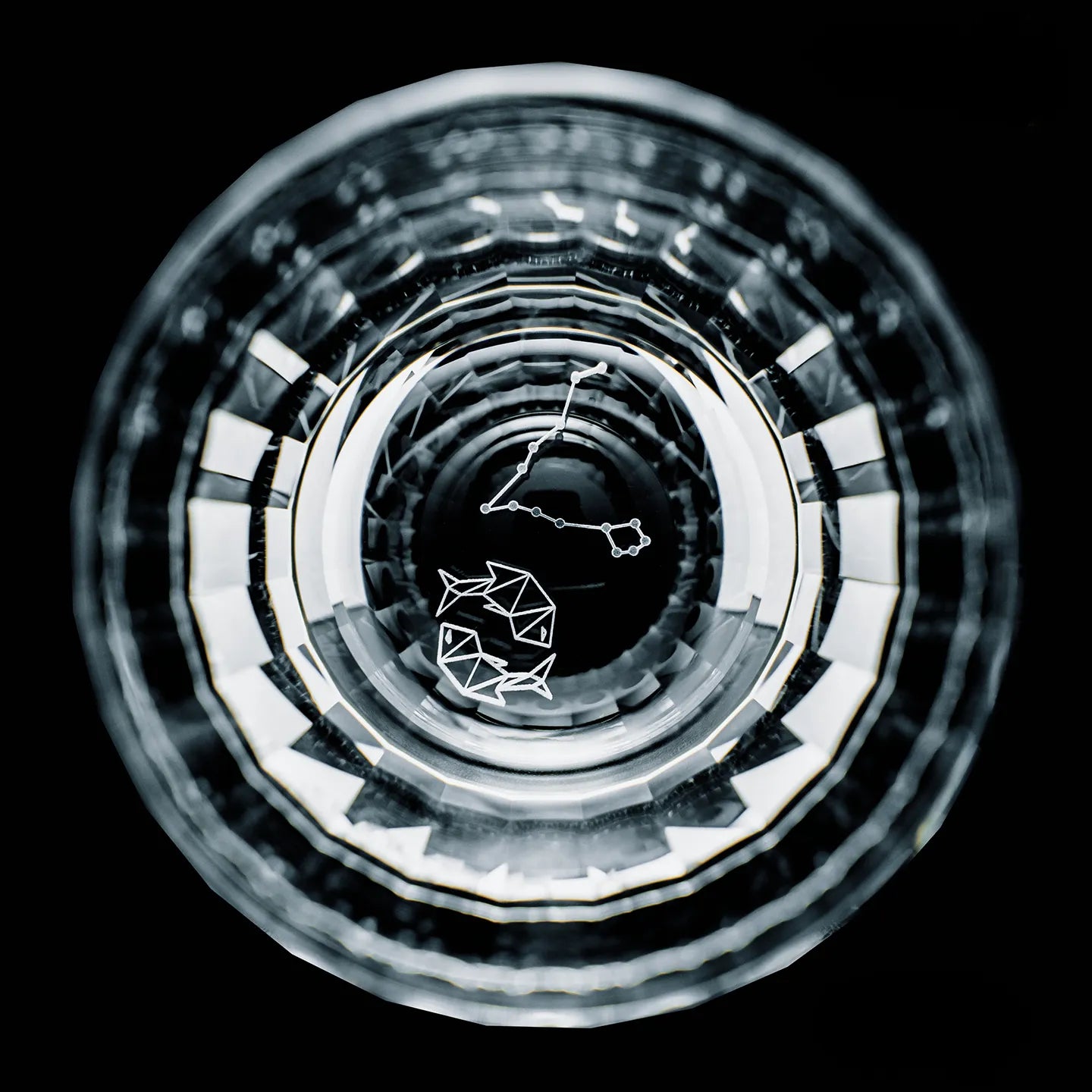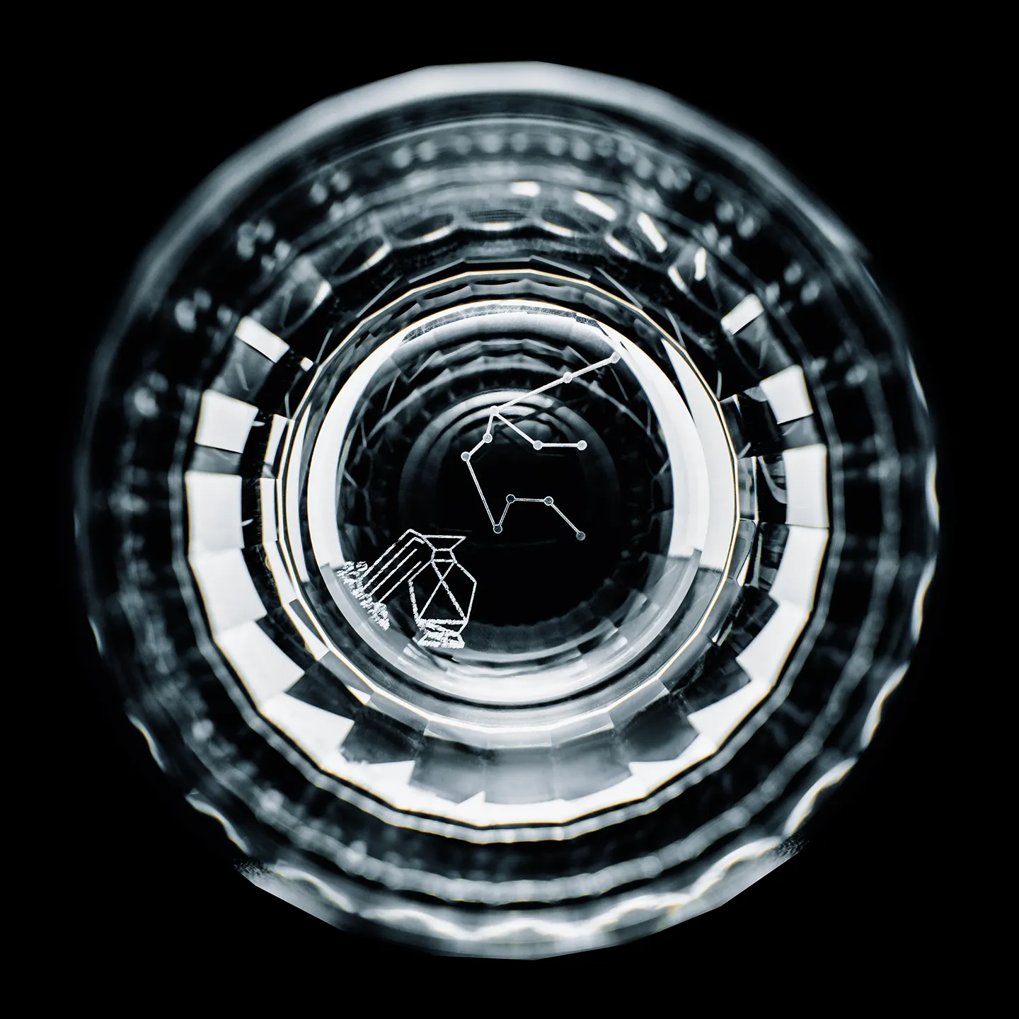 Each glass in this twelve-piece series is meticulously hand-cut by skilled artisans, showcasing the precision and brilliance of traditional Edo Kiriko craftsmanship. At the base of every glass rests an intricately engraved constellation, one for each of the twelve zodiac signs, illuminated when light passes through the clear crystal. The delicate refractions reveal subtle patterns reminiscent of starlight glimmering across a night sky.