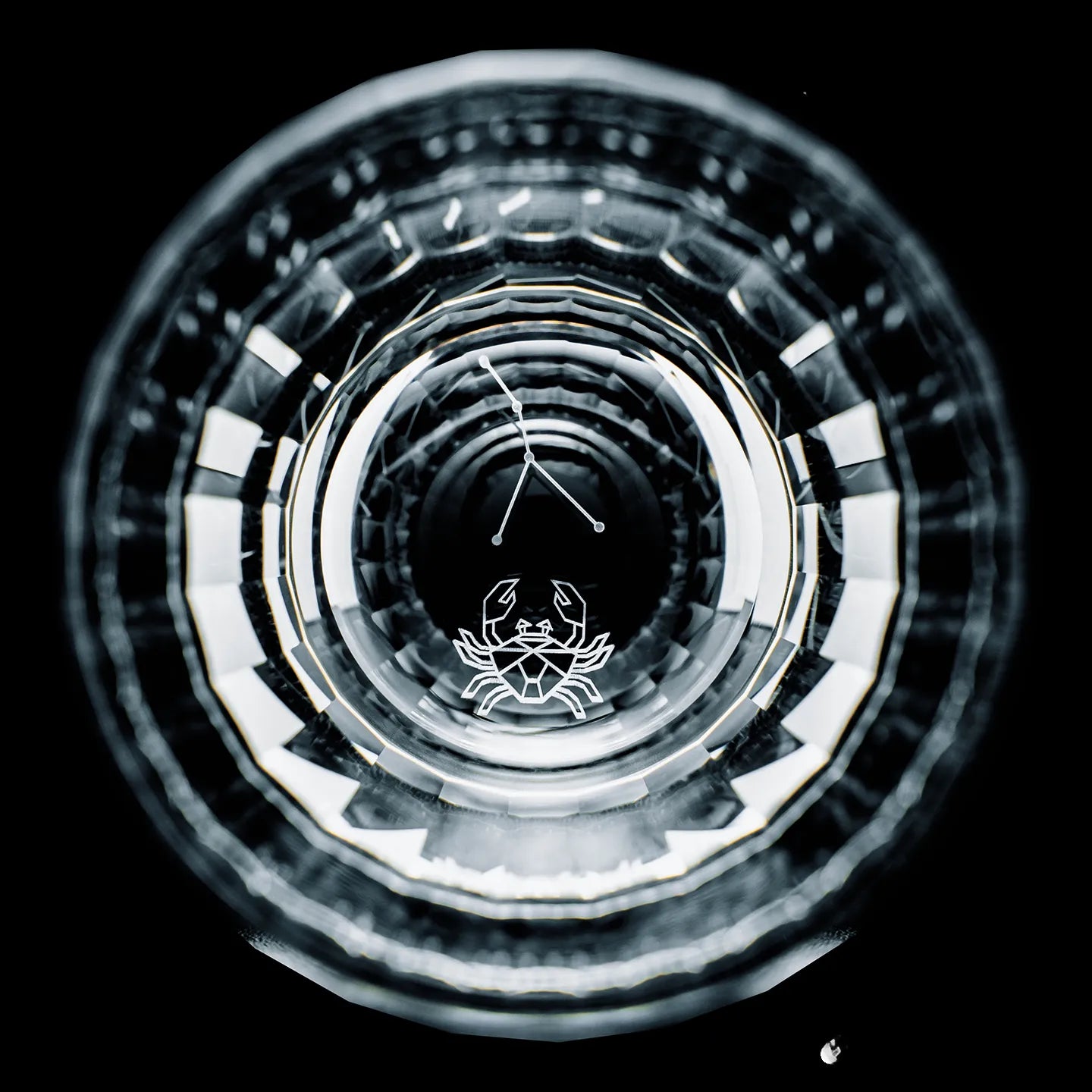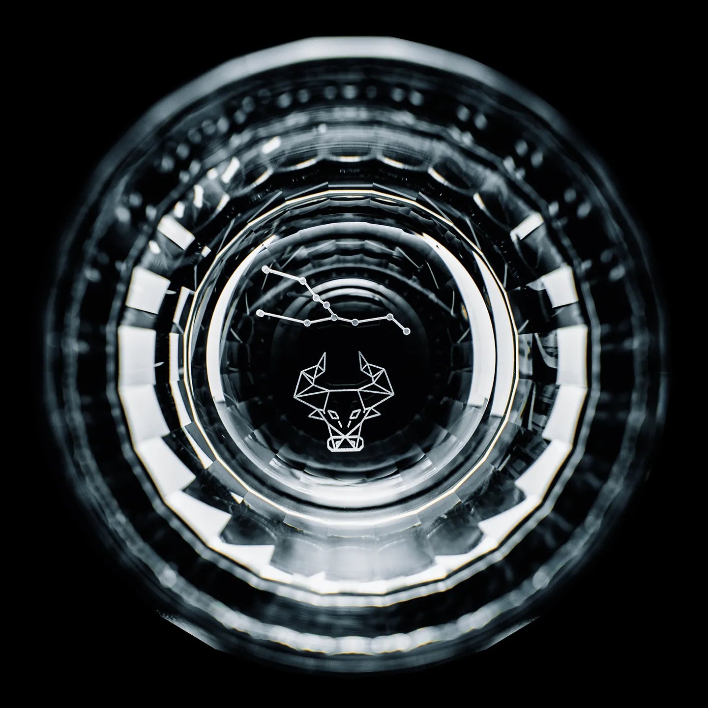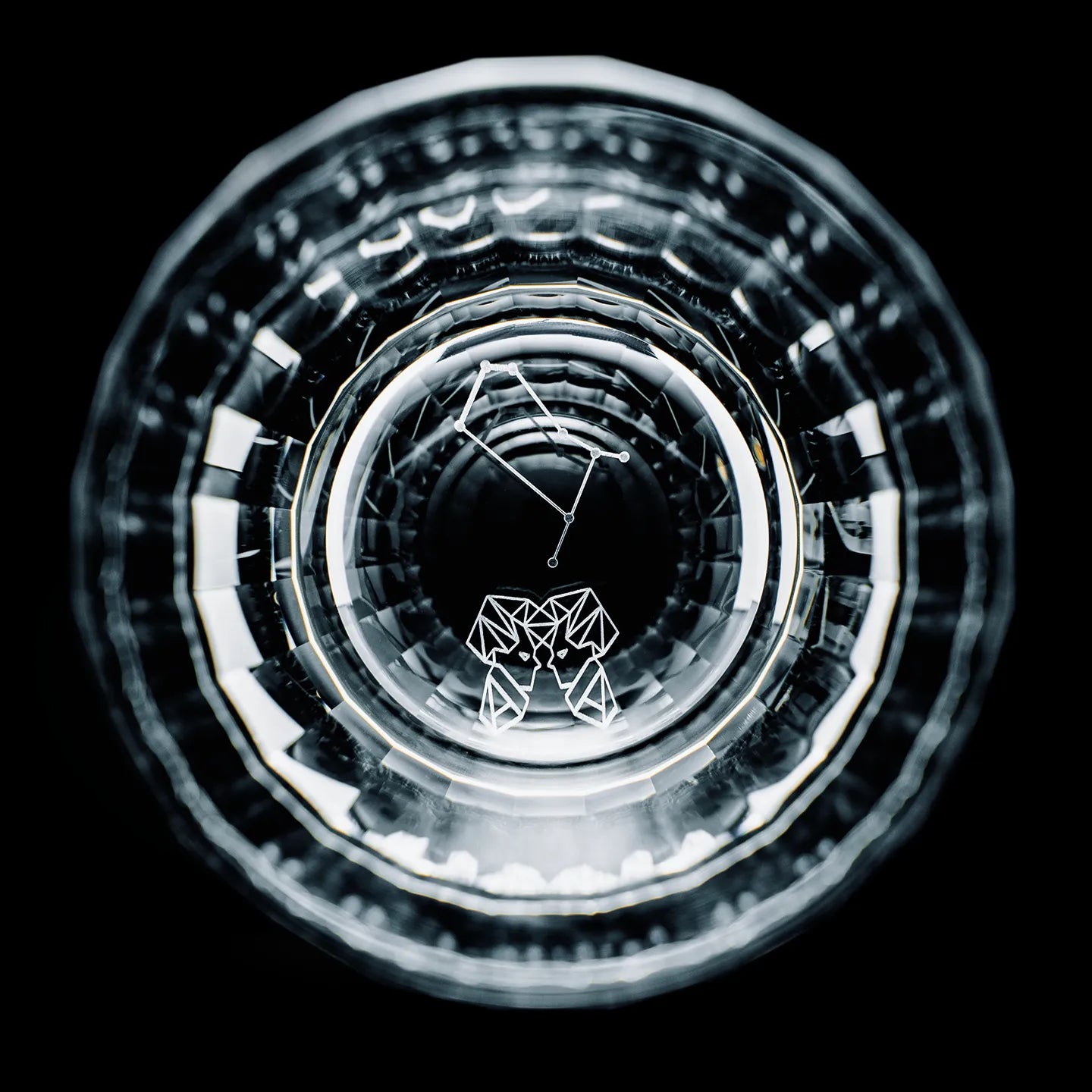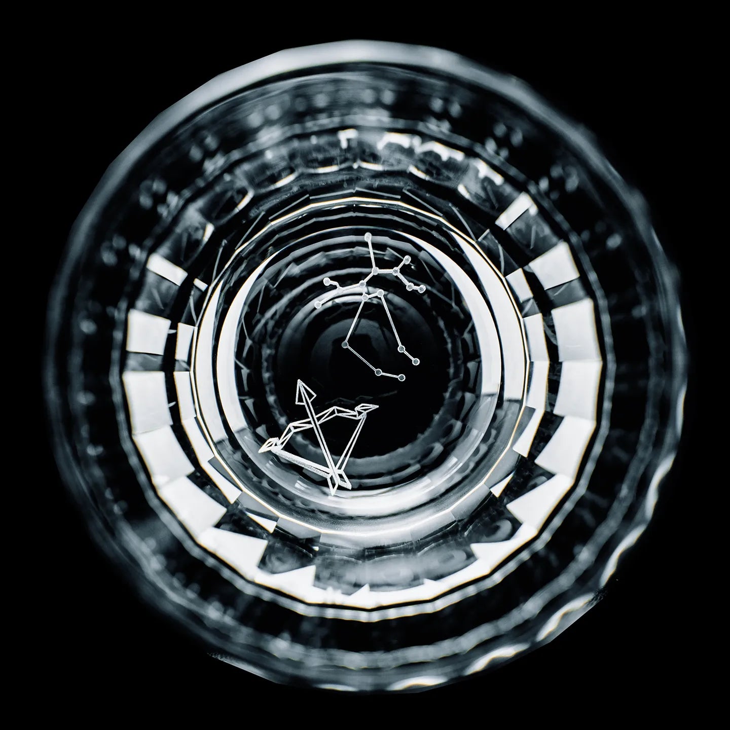 Each glass in this twelve-piece series is meticulously hand-cut by skilled artisans, showcasing the precision and brilliance of traditional Edo Kiriko craftsmanship. At the base of every glass rests an intricately engraved constellation, one for each of the twelve zodiac signs, illuminated when light passes through the clear crystal. The delicate refractions reveal subtle patterns reminiscent of starlight glimmering across a night sky.