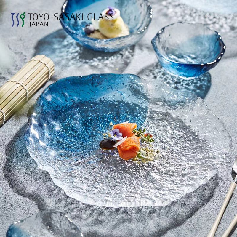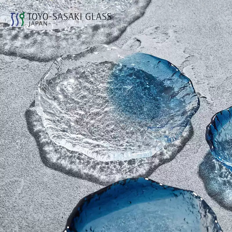 The Toyo-Sasaki Handcrafted Seiro Tableware Collection brings together subtle elegance and natural beauty through hand-finished glassware that evokes the quiet clarity of early morning dew. The word “Seiro” (清露せいろ) means “pure dew,” and each piece captures that sense with soft gradients of misty blue and a rippling texture reminiscent of water’s surface.